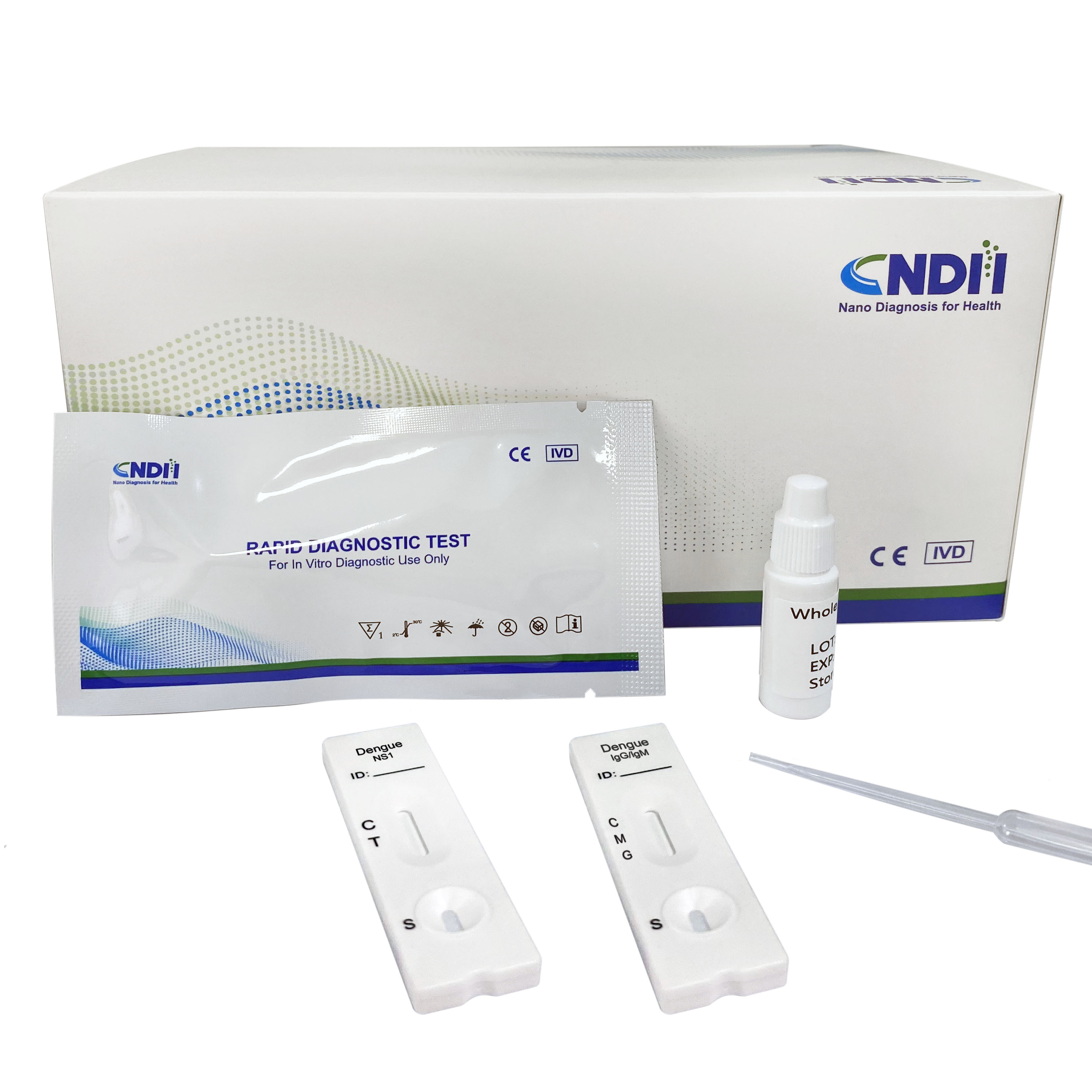 | Dengue IgG/IgM Rapid Test | Whole Blood / Serum / Plasma | Cassette | 1/10/25T |