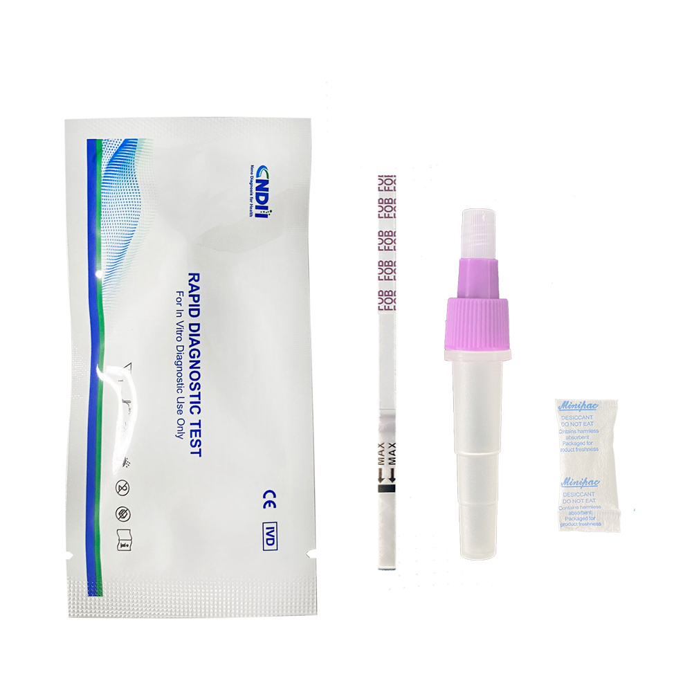 Fecal Occult Blood (FOB) Rapid Test is a rapid chromatographic immunoassay for the qualitative detection of human hemoglobin (HB) from blood in fecal.